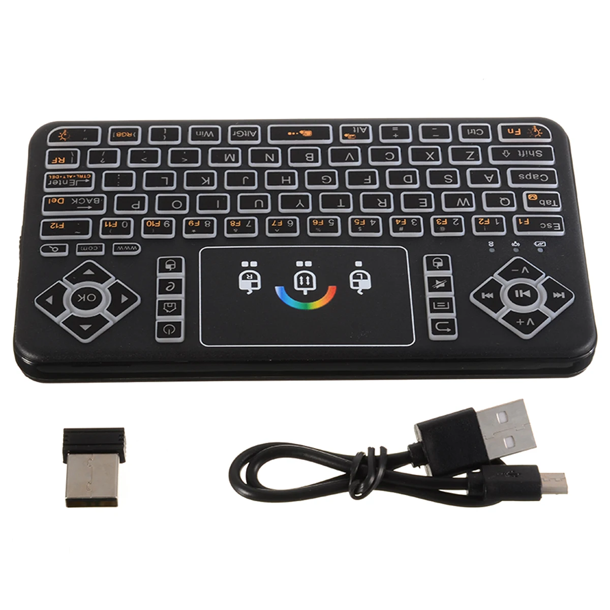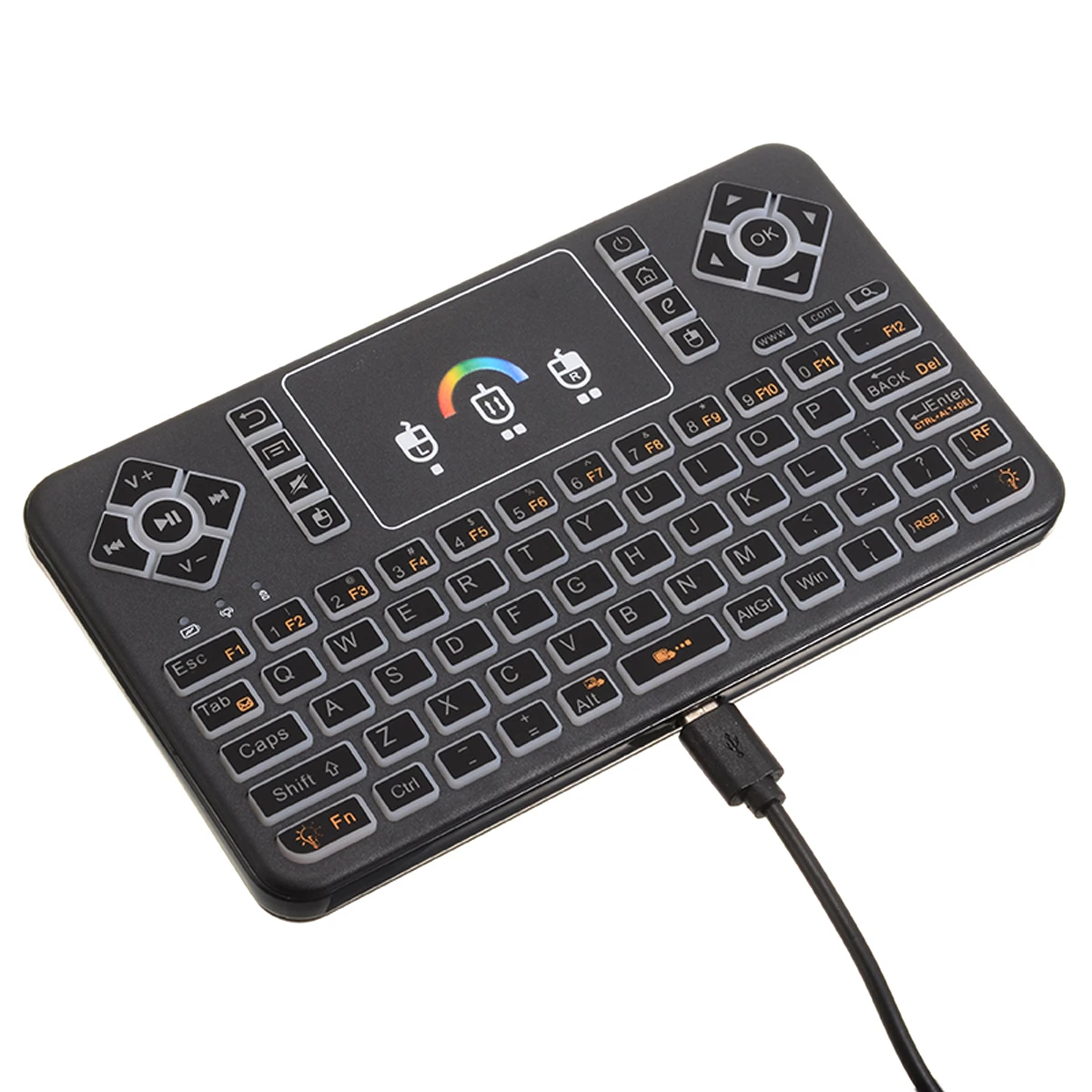 1PC 3.7V Mini Backlit English Wireless Keyboard Touchpad Handheld Q9 2.4GHz 7-colors For Android PC